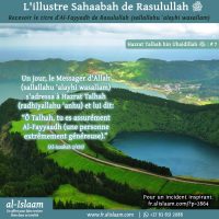 Hazrat Jaabir bin Abdillah (radhiyallahu ‘anhu) rapporte: Le jour d’Uhud, lorsque les Compagnons commencèrent à fuir le champ de bataille, le Prophète (sallallahu ‘alayhi wasallam) fut laissé seul à un certain endroit avec seulement douze Compagnons présents avec lui. Parmi ces douze Compagnons se trouvait Hazrat Talhah ibn Ubaydillah (radhiyallahu …