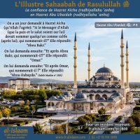 Hazrat Umar (radhiyallahu ‘anhu) répondit : « Quant à ce que vous avez mentionné concernant le compagnie de Rasulullah (sallallahu ‘alayhi wasallam) et le fait qu’il soit content de moi, alors(ce n’est en rien ma propre réalisation) c’est une grande générosité et une grande faveur de la part de Allah Taala qu’Il m’a accordé.